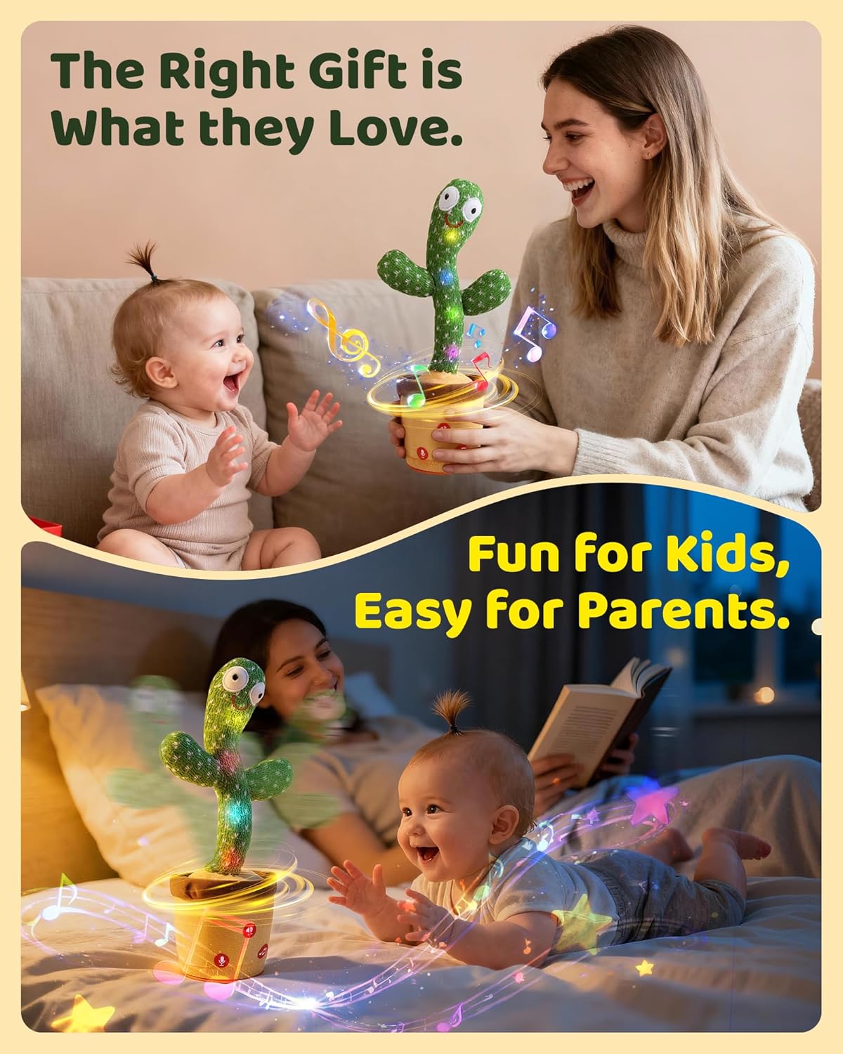 - ADJUSTABLE VOLUME CACTUS : Dancing talking cactus with 4-level volume adjustment function meets different usage needs. When your baby needs to dance or sleep, you can adjust the volume to different levels.