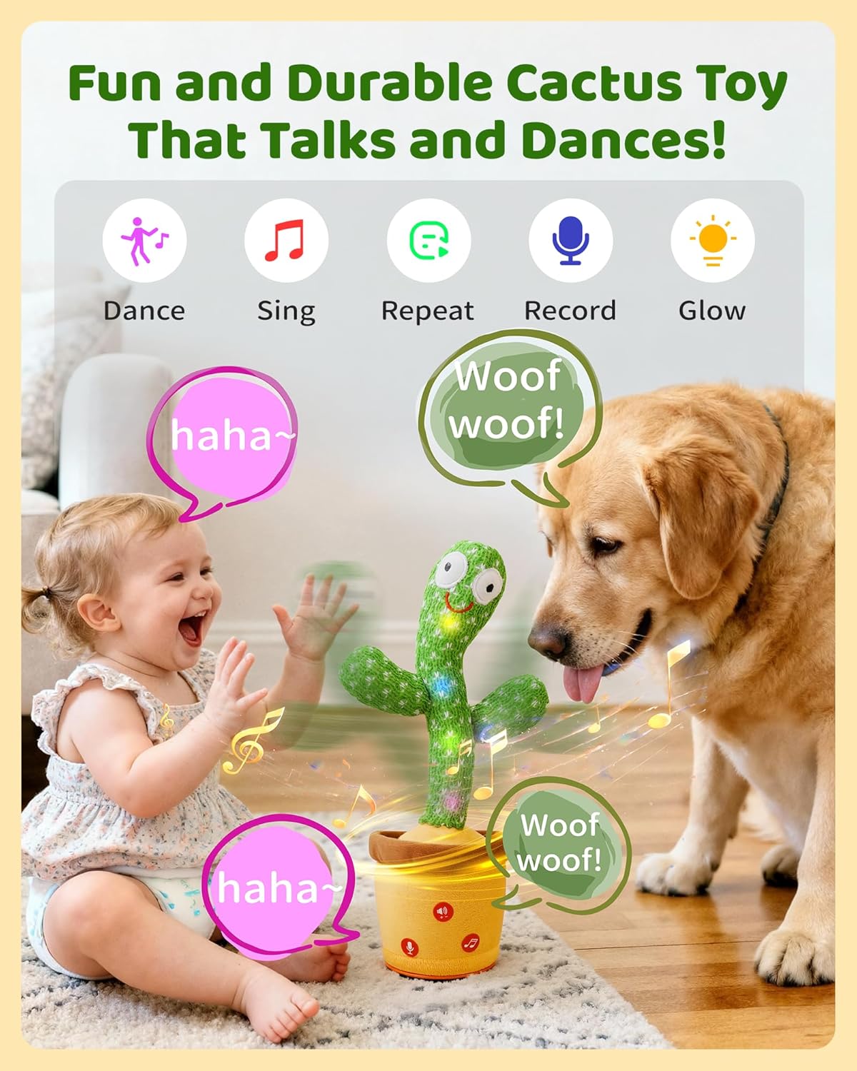- TALKING CACTUS TOY : The dancing talking cactus toy features 120 English songs and dances along to the music. This plush cactus toy can also record and repeat what you say in a humorous and entertaining way.