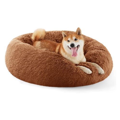 Bedsure Calming Dog Bed for Medium Dogs – Donut Washable Medium Pet Bed, 30 inches Anti-Slip Round Fluffy Plush Faux Fur Cat Bed, Fits up to 45 lbs Pets, Copper