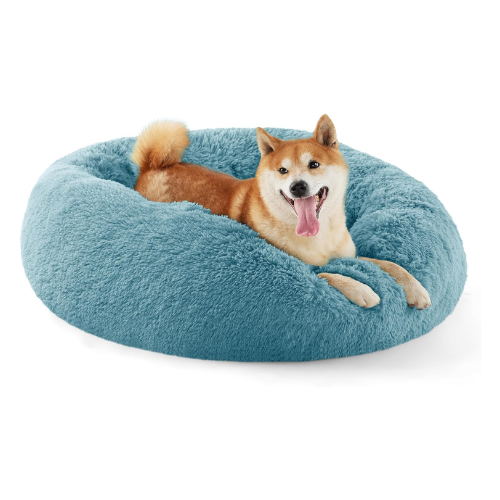 Bedsure Calming Dog Bed for Medium Dogs – Donut Washable Medium Pet Bed, 30 inches Anti-Slip Round Fluffy Plush Faux Fur Cat Bed, Fits up to 45 lbs Pets, Washed Blue