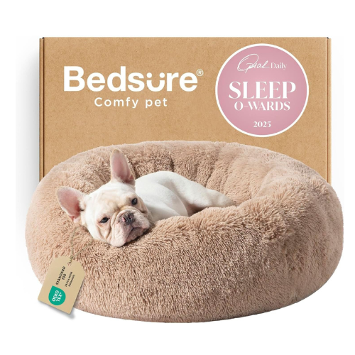 Bedsure Calming Dog Bed Medium Size Dog – Donut Washable Medium Pet Bed, 30 inches Anti-Slip Round Fluffy Plush Faux Fur Cat Bed, Fits up to 45 lbs Pets, Camel