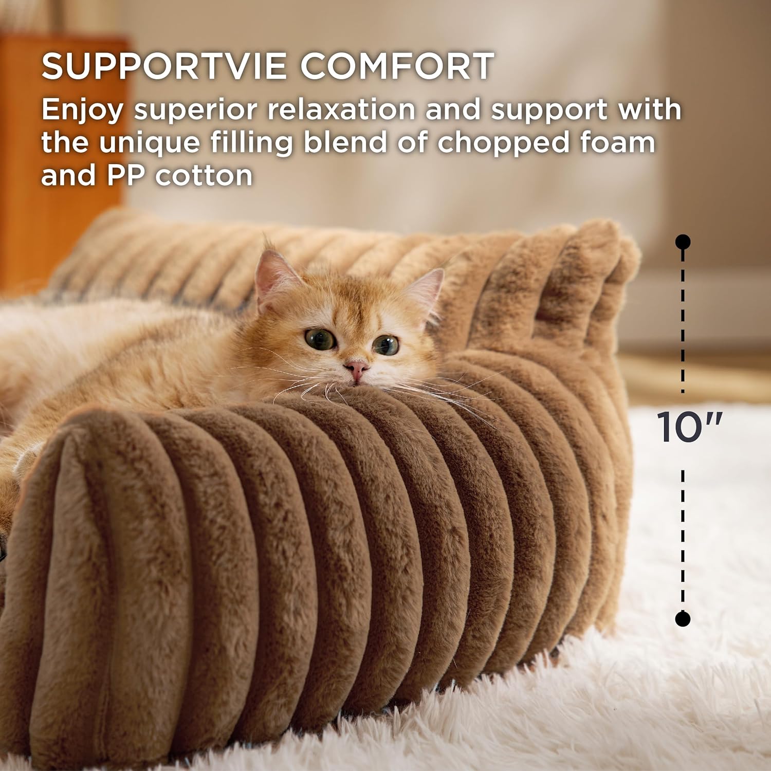 Bedsure ComfyFleece Cute Cat Couch for Pets – Fluffy Cat Sofa with Premium Soft Corduroy Fleece, Fuzzy Pet Couch Bed with Washable Cover, Supportive Pet Chair for Indoor Cats, 24inch, Camel Brown