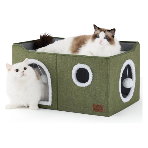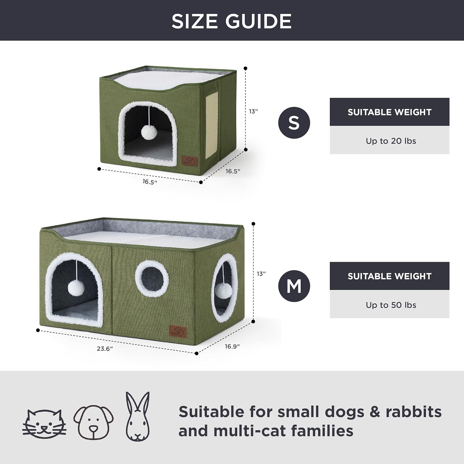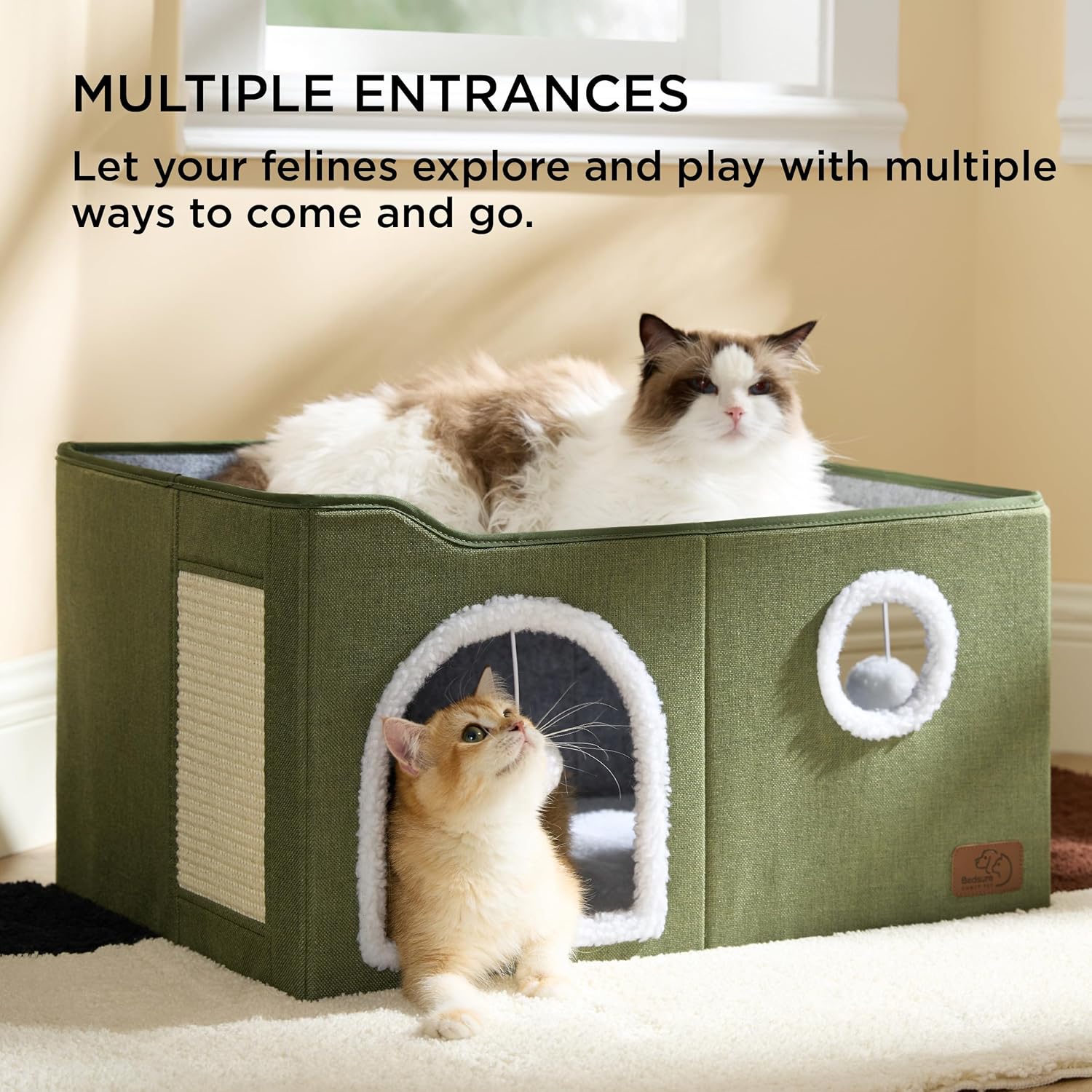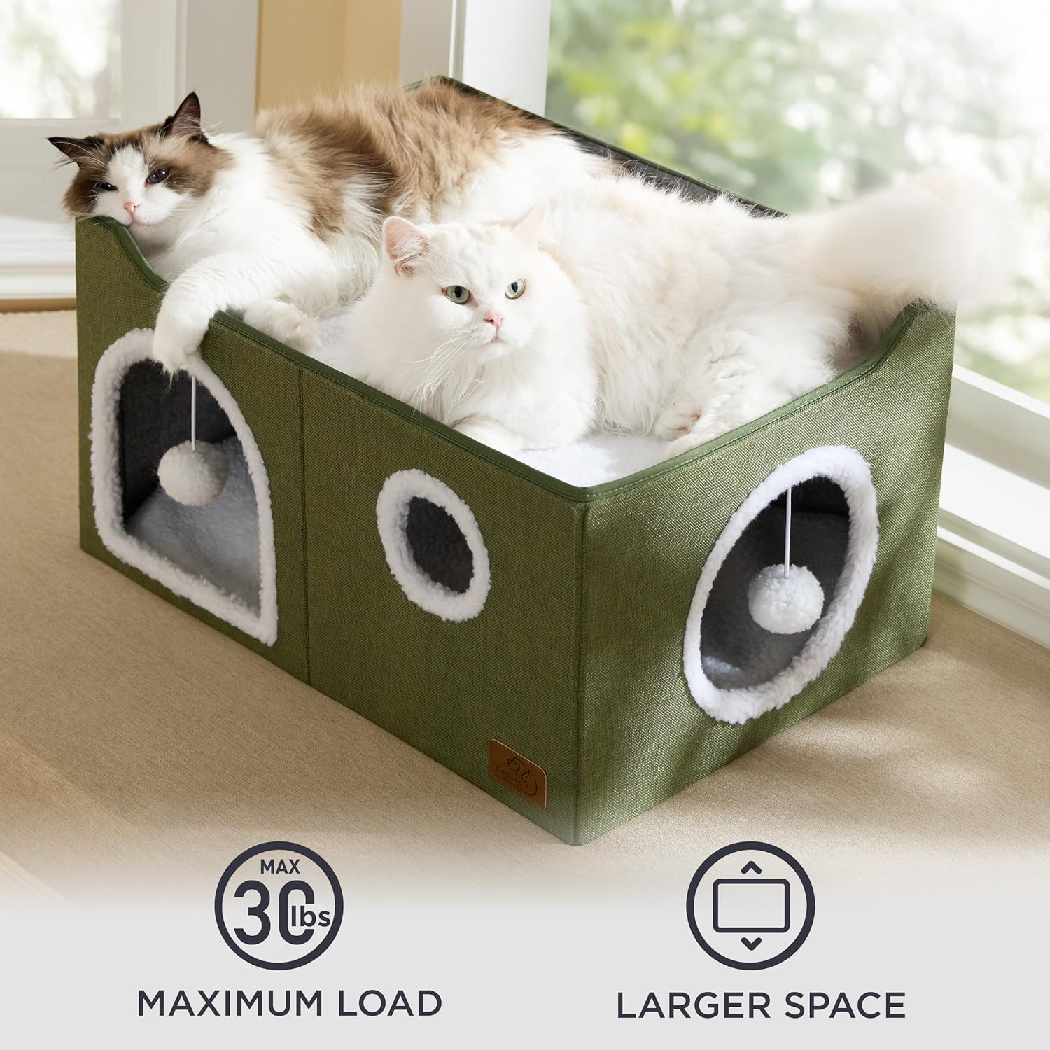 Bedsure Large Cat Beds for Indoor Cats – Extra Wide Cat Cube House for Small Pet with Fluffy Ball Hanging and Scratch Pad, Foldable Pet Cave Hideaway for Multiple Cats, 23.6×16.9×13 inches