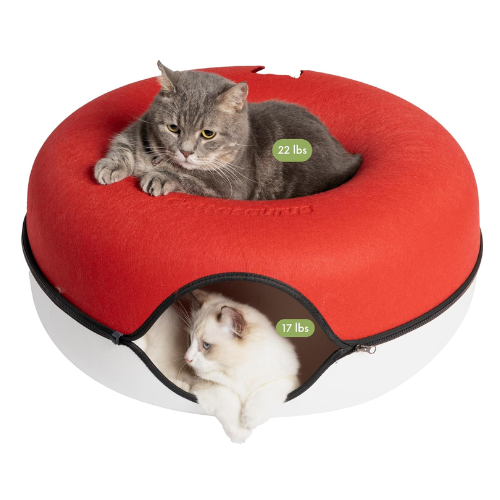 - Sturdy, Eco-conscious & Cat-friendly: The Peekaboo Cat Cave is made with durable, non-toxic, and odor-resistant materials, ensuring it maintains its shape and withstands regular use. Its cat tunnel bed, constructed from selected wear-resistant felt material, prevents fluffy ball formation and allows for safe scratching and rubbing. With all-season versatility, the Peekaboo Cat Cave provides a cozy and comfortable donut bed and tunnel, offering year-round enjoyment for your feline companion.