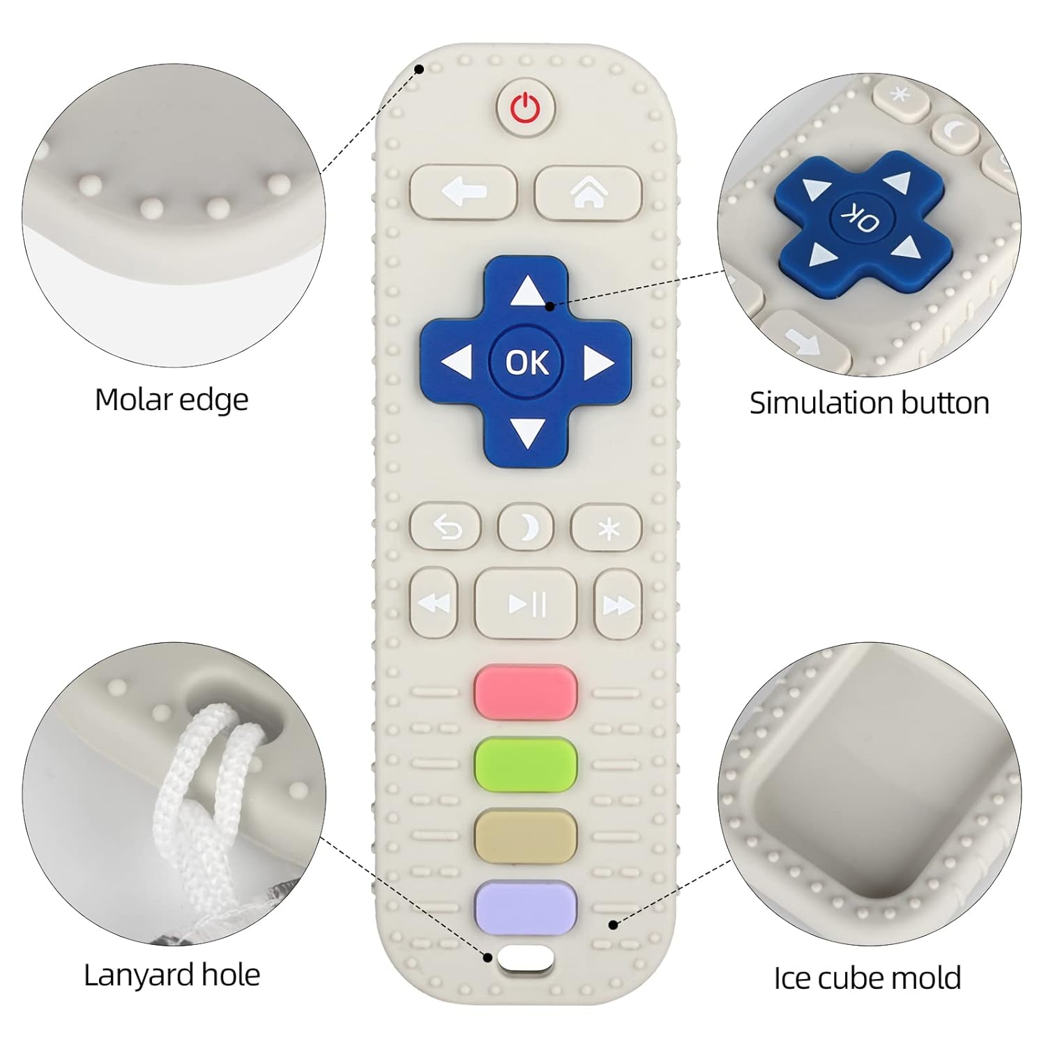 Chuya Silicone Baby Teether Toy TV Remote Control Shape Chew Toy for Babies 3+ Months, Teething Relief Baby Toys for Infants (White)