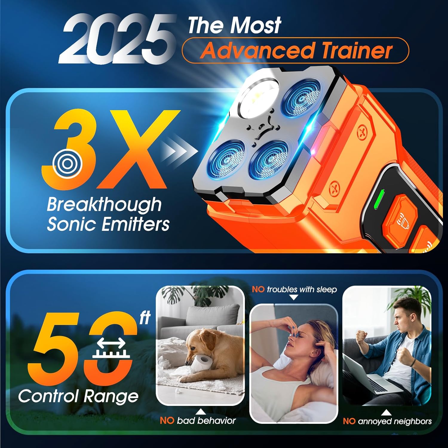 Dog Bark Deterrent Devices, Anti Barking Device 3X Ultrasonic Bark Control Device 50ft Range, Rechargeable & Safe Dog Training Tool for Quiet Walks and Peaceful Homes