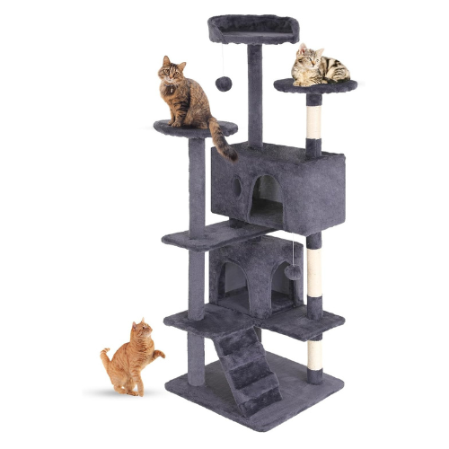 FDW | 54″ Cat Tree Tower | Ashy | Multi-Level Indoor Activity Center with Sisal Scratching Posts, Condos, Plush Perches, Hanging Cat Toys | Sturdy, Easy to Assemble | for Kittens & Adult Cats