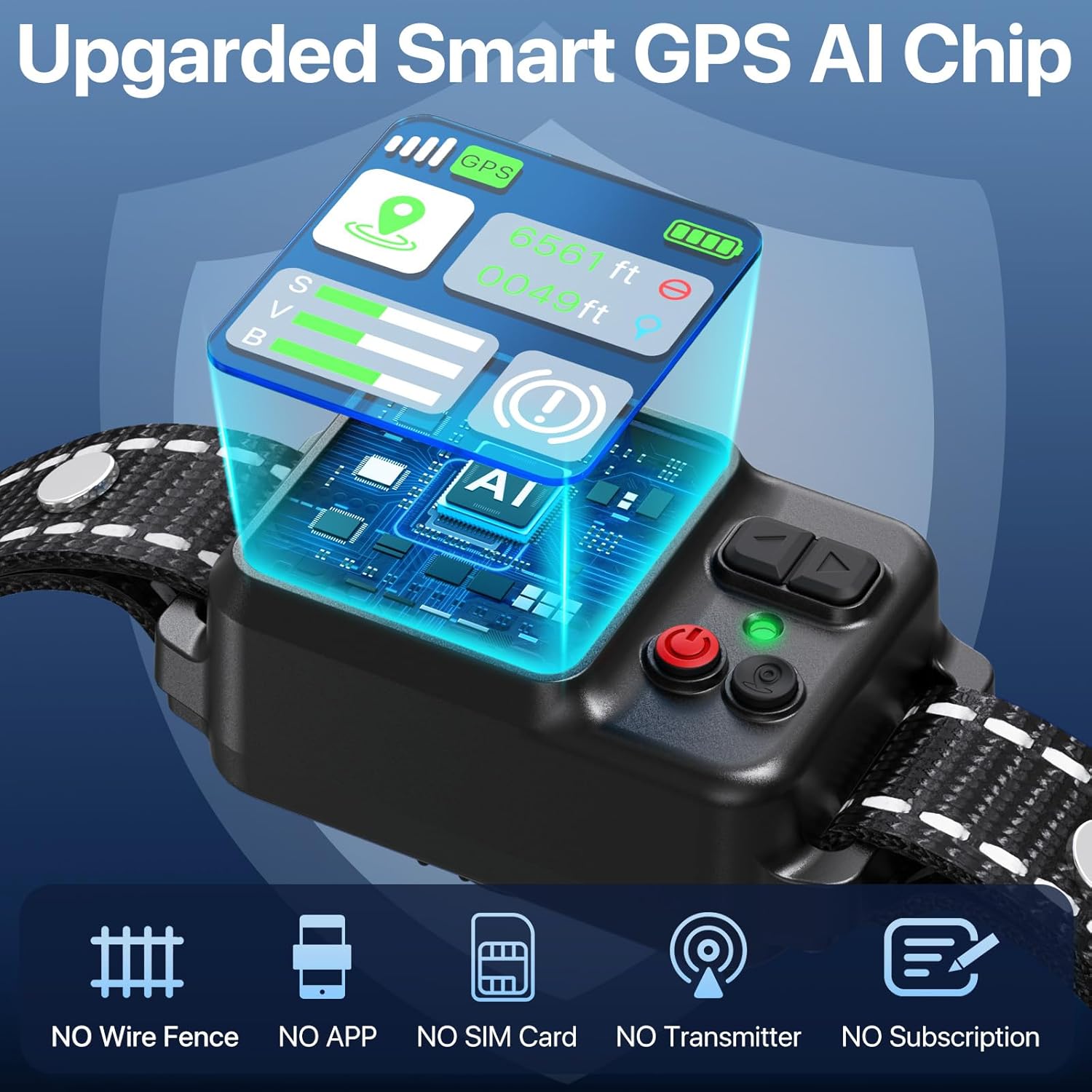 Elevate your dog’s safety with our AI GPS Wireless Dog Fence, featuring cutting-edge positioning tech for ultra-precise real-time tracking, high sensitivity, and strong anti-interference—immune to metal/electronics unlike traditional fences. It ensures accurate zone confinement for effective training.