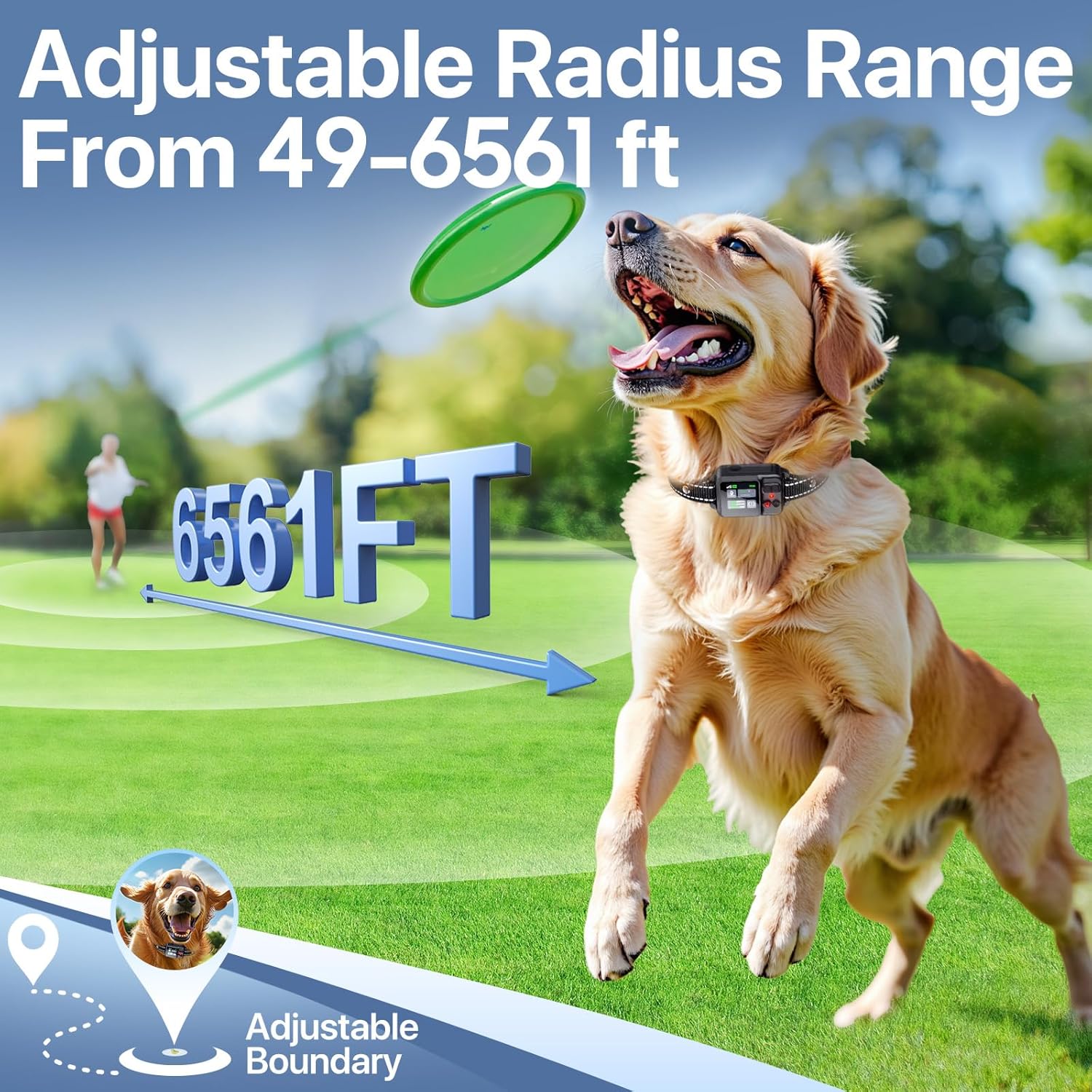 GPS Wireless Dog Collar Fence System,Invisible Electric Fence for Dogs,Adjustable Range 49-6561ft,3 Training Mode,Rechargeable,Waterproof,Pet Containment System for Outdoor Use (Black)