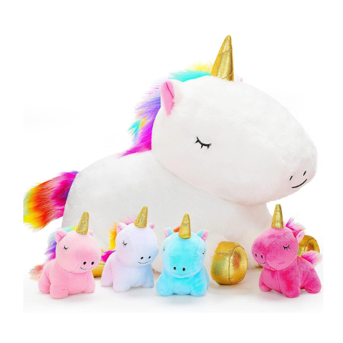 - Soft Toys for Kids: 4 cute baby unicorns in mommy’s belly, open the zipper you can see that, what a surprise! The girls absolutely love them and can’t wait to cuddle and play with them. This plush toy set comes in a delicate gift box, perfect for a gift for kids ages 0 1 2 3 4 5 6 7 8