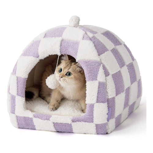 Lesure Cute Cat Beds for Indoor Cats – 2 in 1 Cat Cave Bed for Kittens and Small Pets with Removable Washable Cushioned Pillow, Cozy Kitten with Non-Slip Bottom, Purple, 16 inches