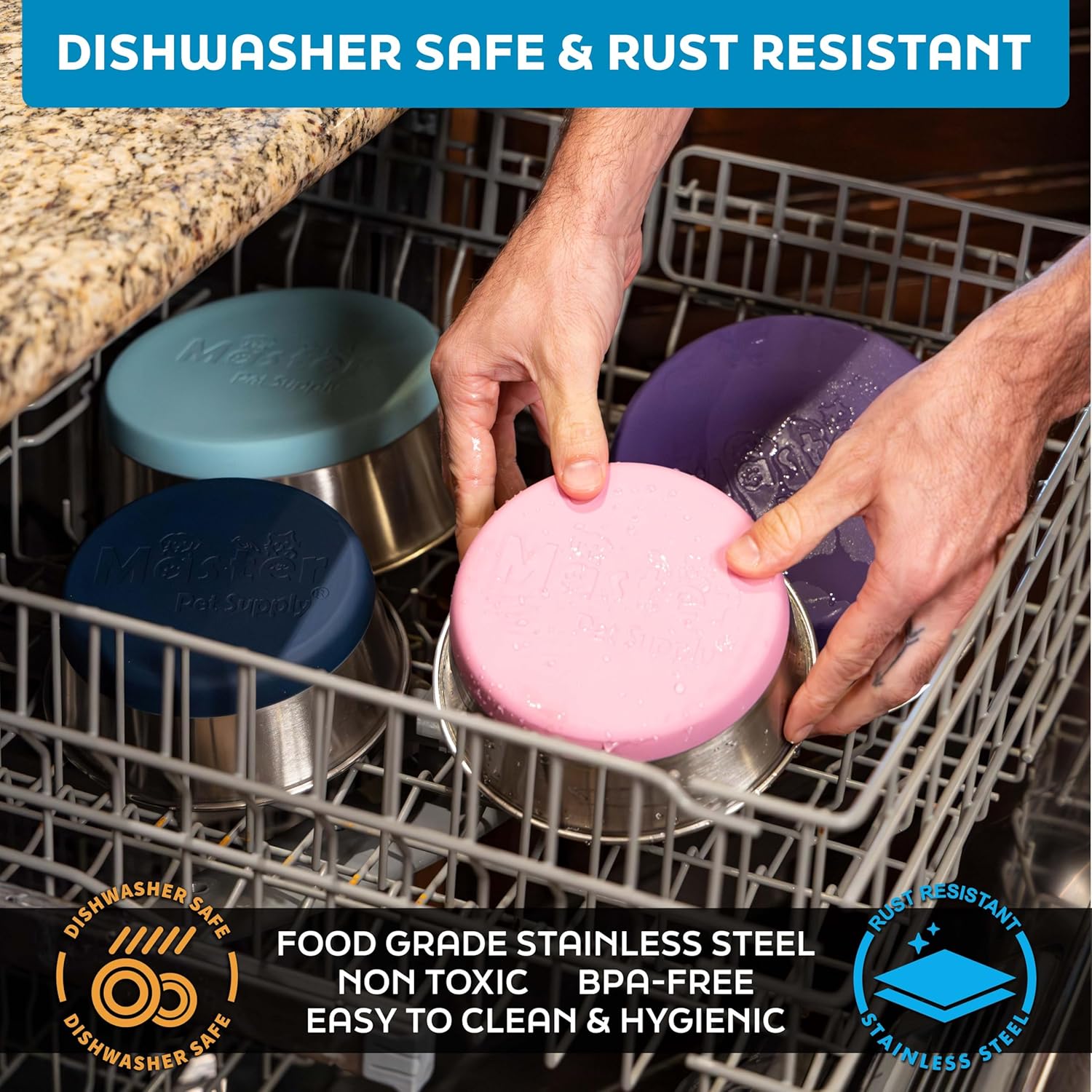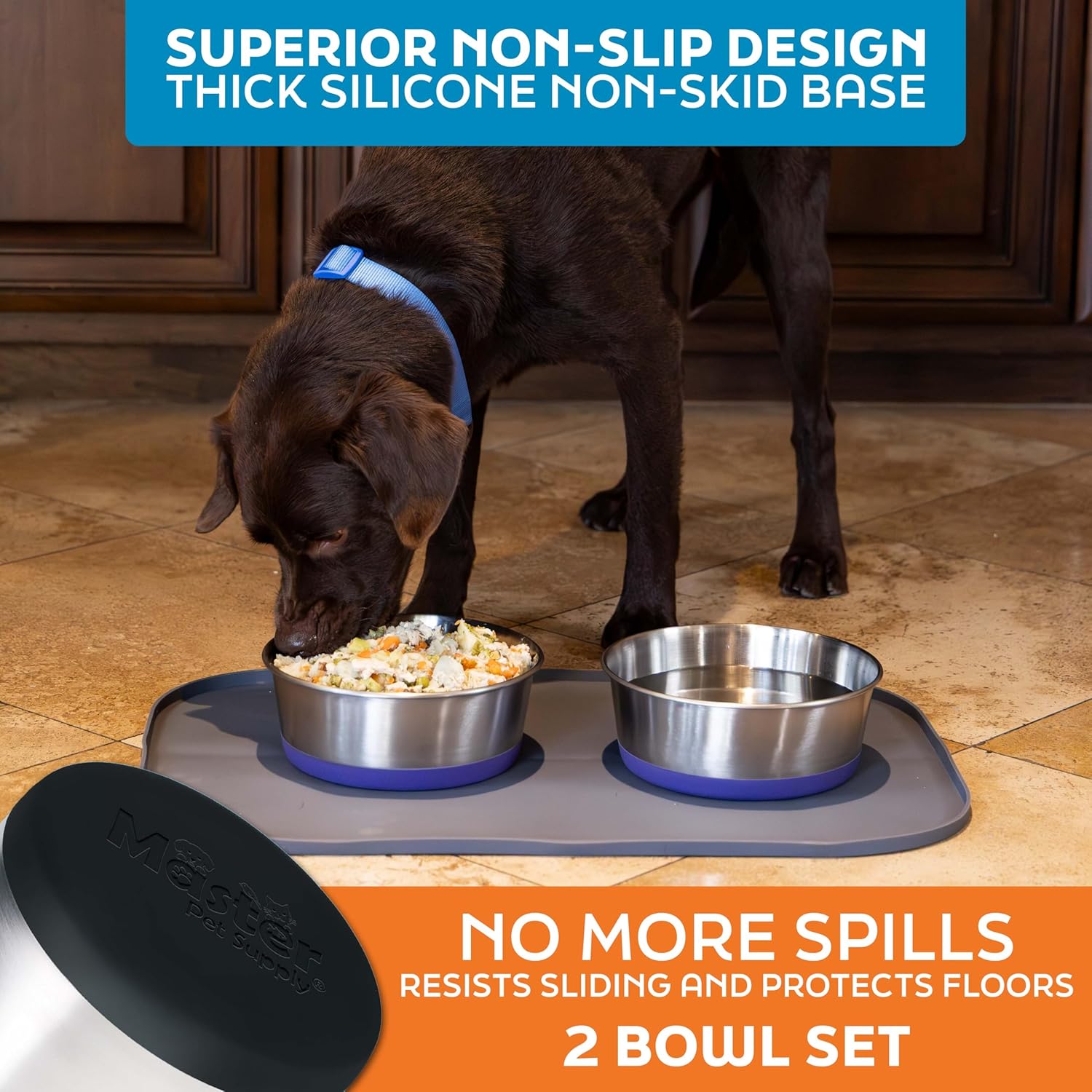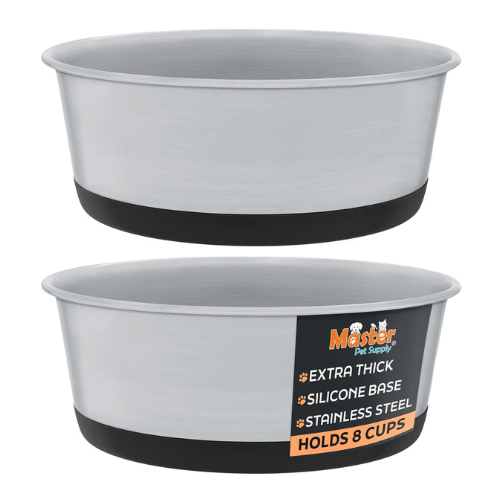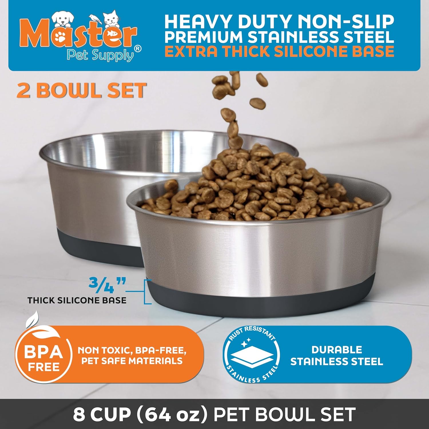 Master Pet Supply Stainless Steel Dog Bowls Set of 2 with Extra Thick Silicone Base – 8 Cup (64 oz) Black Velvet, Non-Slip, Dishwasher Safe Metal Bowls, Pet Dog Food Bowl for Dogs, Cats, Anti Rust
