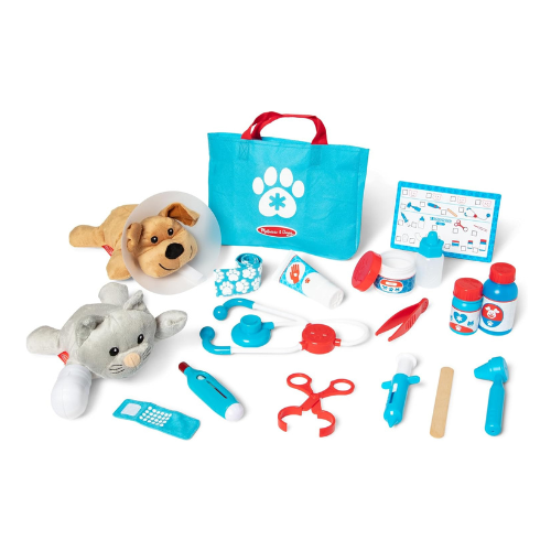 Melissa & Doug Examine and Treat Pet Vet Play Set, 24-Piece Animal Doctor Playset with Dog & Cat Plushies, Pet Doctor Kit & Accessories, Preschool Toys for Girls & Boys Ages 3+