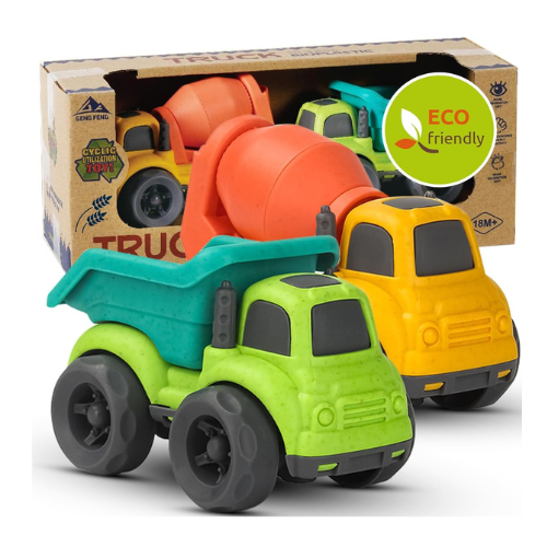 - 【Safe Toy】Dump truck & Mixer Cement is made with environment-friendly materials. Use of post recycled plastic with no BPA, palates, or PVC — is safe for earth and child. Toy is packed using recycled materials and printed with soy inks for tal safety.