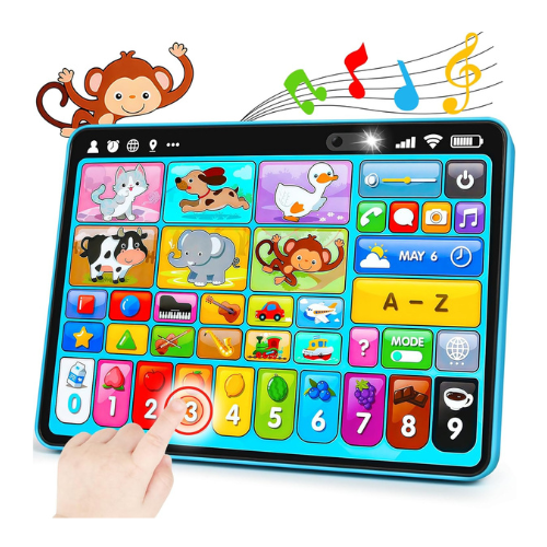 Trilingual Learning Toy Tablet with Music & Sound, Montessori Speech Musical Therapy Toys, Gifts for Boy, Girl, Baby, Toddler, for Age 1, 2, 3 Year Old (12-18 Months)